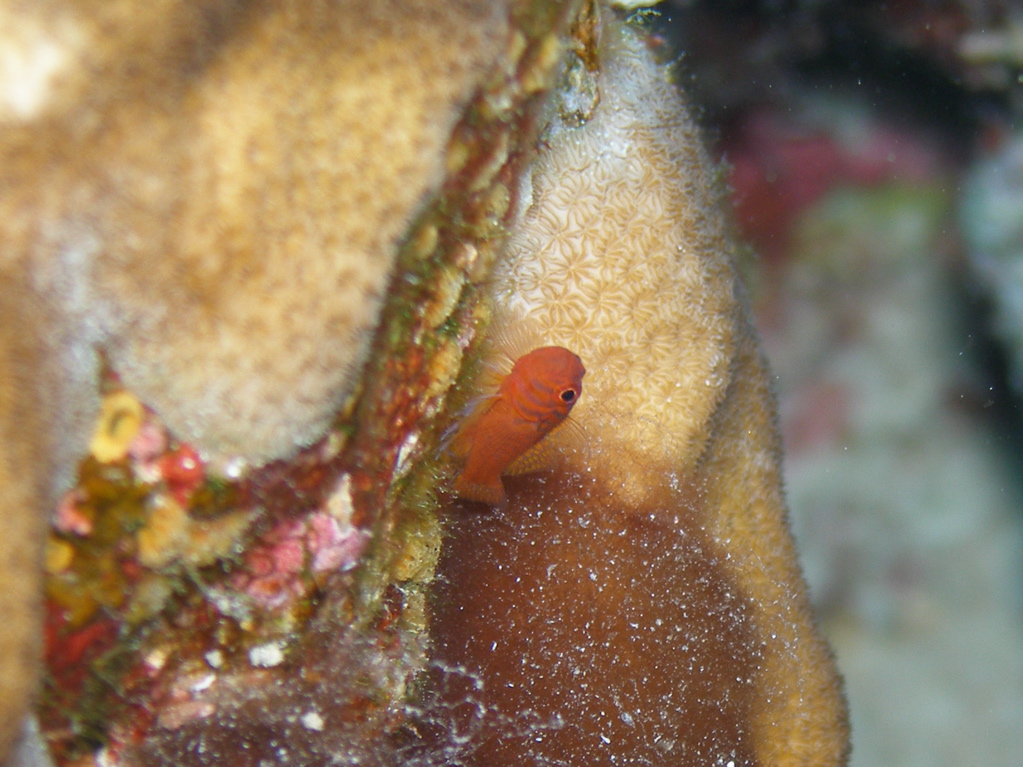 それから、にじりよって、アザハタを撮影。 カニ、エビがうじゃうじゃ。 しかし、ホワイトソックスは探し出せなかった。 DECO まで 2 分になったので、浮上して、中層を帰って行った。