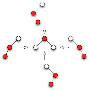 In 1999, Okasaki showed that the insertion operation can be implemented elegantly in the purely functional way. Its *balance* function takes care of four unbalanced cases and one balanced default case.