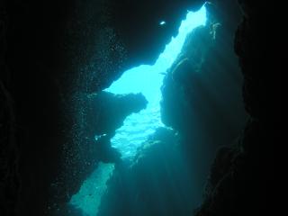 一本目はニタの海底トンネル。 潜水後、一緒になった女性の 100 本記念撮影。 その後洞窟へ向かう。 透明度良好。くー。
